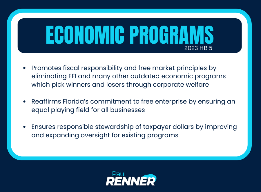For example, Enterprise Florida, Inc., had long over-promised and under-delivered, draining taxpayer dollars to fund corporate welfare in an effort to lure companies to a state that’s already among the most business-friendly in the nation. Paul and his colleagues shut it down and redirected those resources toward policies that benefit all businesses, especially those built right here in Florida.