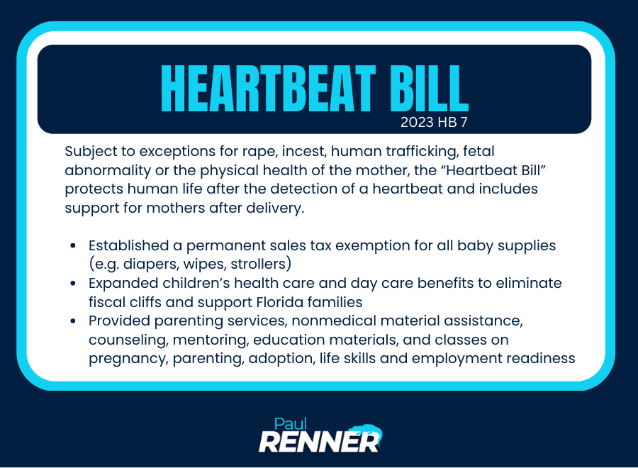 The right to life, liberty, and the pursuit of happiness begins with life itself. Under Paul’s leadership, the Florida Legislature stood for the most vulnerable among us by defending the right to life for thousands of unborn boys and girls.